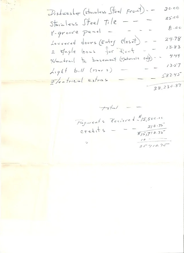 SLIDE 3: Page one of a Statement of Account that listed pricing for the home’s custom appliances and building materials
